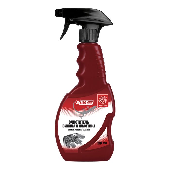 Легко удаляет пятна грязи, масла, чернил, сладостей, копоти. Обеспечивает защиту от пятен и выгорания. Используйте в автомобиле, доме, мастерской. 3ton Очиститель винила и пластика превосходен для очистки и защиты от грязи, восстановления цвета виниловых и пластиковых покрытий салона и декоративной отделки кузова автомобиля, таких как приборная доска, дверные панели, центральная консоль, сиденья, потолок. Идеален для очистки кухонной мебели, сумок для гольфа и других изделий из пластика и кожзаменителя. Не содержит абразивов. Не рекомендуется для очистки изделий из замши. Обладает антистатическим и водоотталкивающим действием.