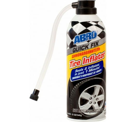 Герметик Abro аэрозоль 0.340 л для ремонта шин ABRO INDUSTRIES INC QF-25 предназначен для быстрого ремонта и накачки проколотых шин. Наиболее эффективен для бескамерных шин, однако ремонтирует и небольшие проколы в камерах.