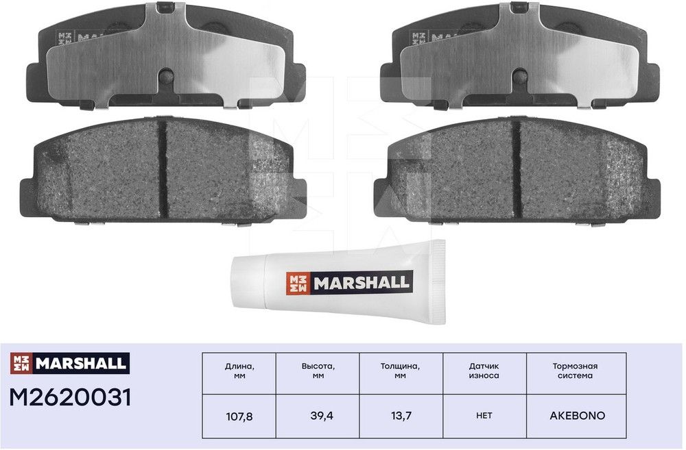 Тормозные колодки дисковые задние MARSHALL M2620031