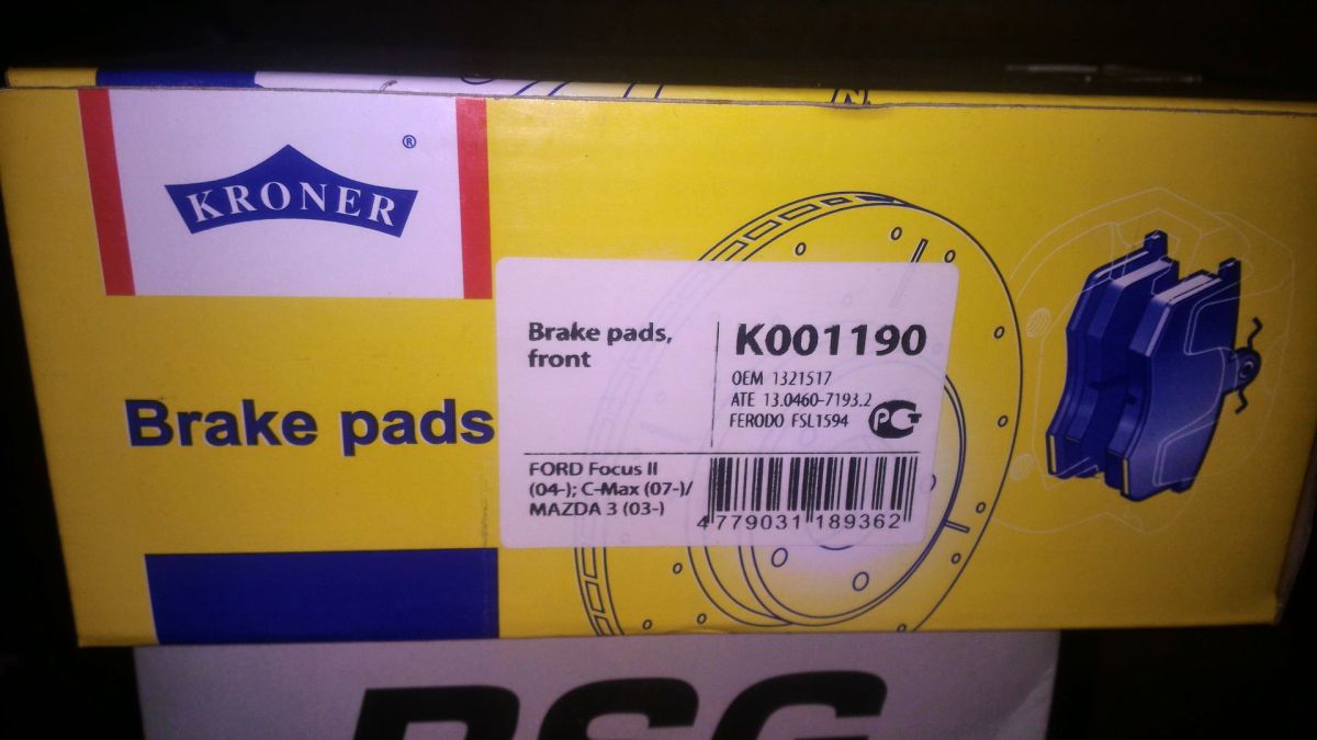 Колодки тормозные Ford Focus II 1,4/1,6/1,8, C-Max; Mazda 3, 5; Volvo C30/S40 II/V50 передние